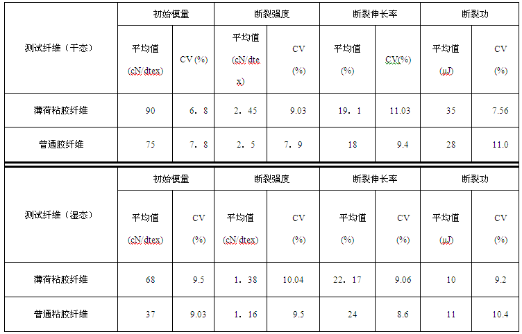 薄荷纤维与普通粘胶纤维性能比较