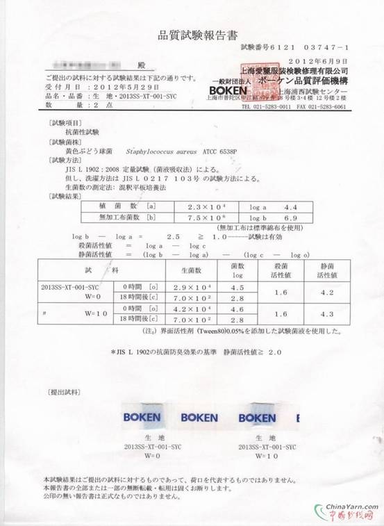 该纤维经过SGS检测机构和国内具有资质的检测单位的检测,其抗菌效果都超过了日本JIS和我国国家标准。由于抗菌剂均匀分布在纤维的内部,抗菌防臭功能持久,粘胶纤维还具有染色效果,对人体无副作用。符合生态纺织品的要求。