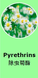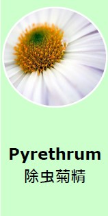 •从除虫菊花朵内萃取出的天然杀虫剂。 •导致昆虫麻痹,但必须与增校剂覆配才能产生持久的效能。 •对哺乳动物不具毒性的杀虫剂之一。 •在灯光下及空气中不稳定,在日光下会快速退化失效 |